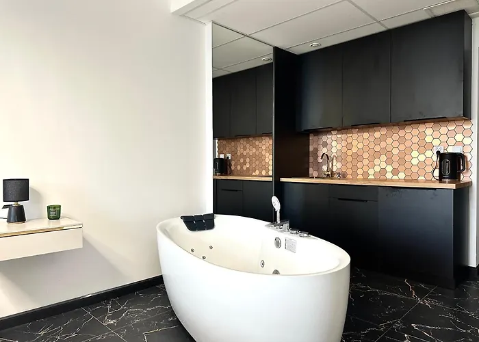 Gold Sleep apartament we Wrocławiu z prywatnym jacuzzi i dużym łóżkiem