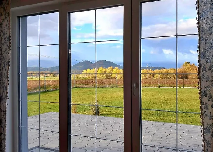 Dom Radomieszka z widokiem na Rudawy i Śnieżkę